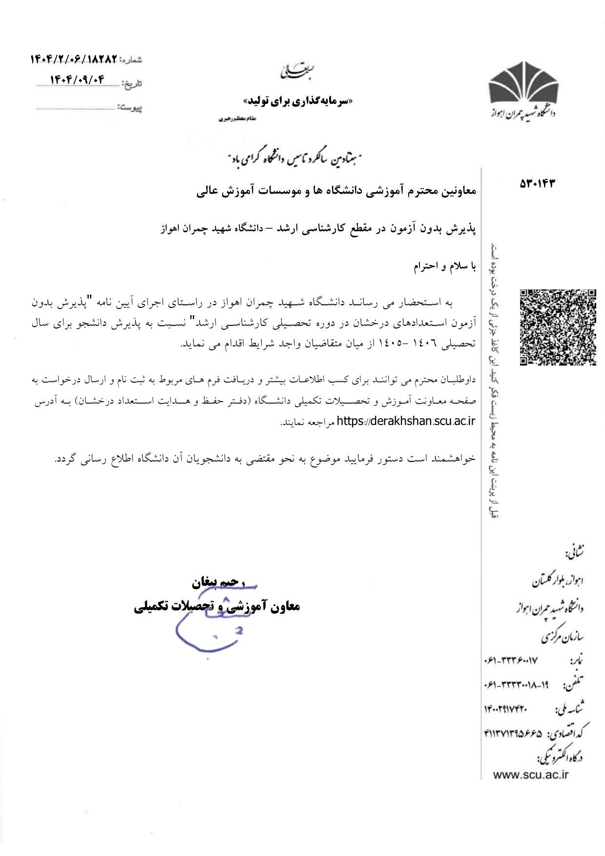پذیرش بدون آزمون استعدادهای درخشان-دانشگاه شهید چمران