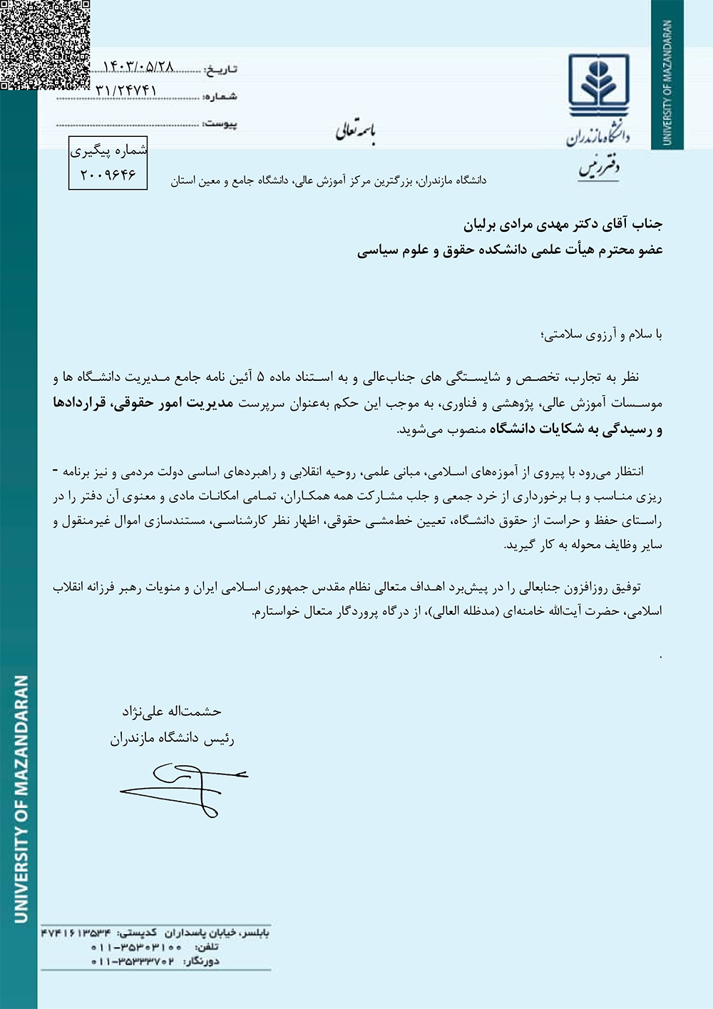 انتصابات جدید در دانشگاه مازندران انجام شد - دانشگاه مازندران