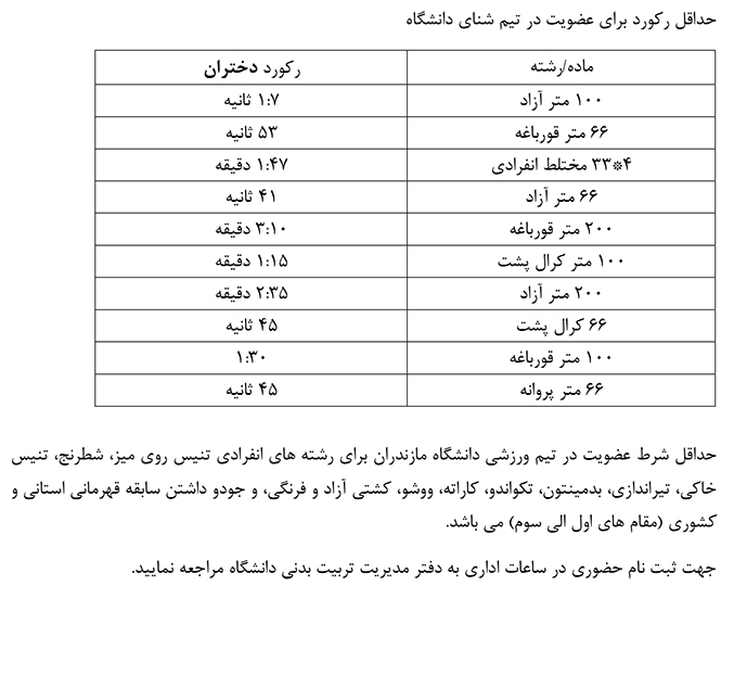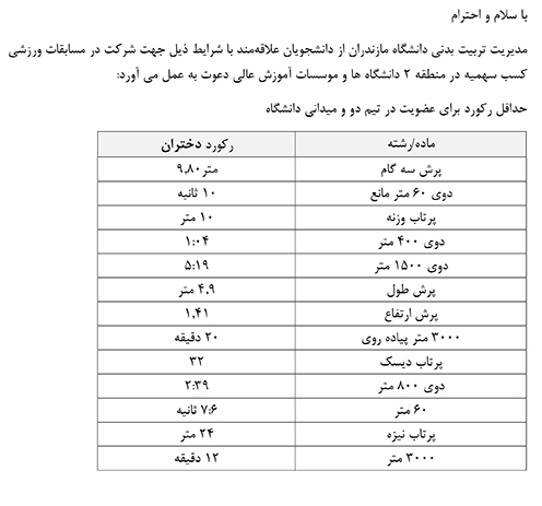 شرایط شرکت در مسابقات ورزشی دانشجویی جهت کسب سهمیه در منطقه 2 دانشگاهها و موسسات آموزش عالی - دانشگاه مازندران