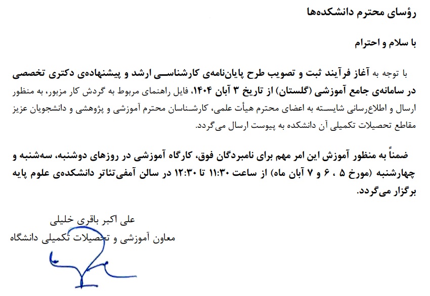 پیرو تصویب ثبت پرپوزال در سامانه گلستان از 2آبان