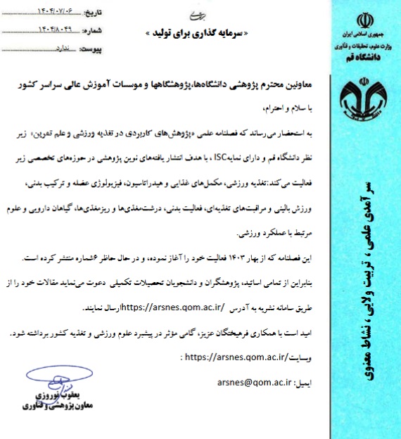 نشریه پژوهش هاي کاربردي در تغذيه ورزشي و علم تمرين-دانشگاه قم