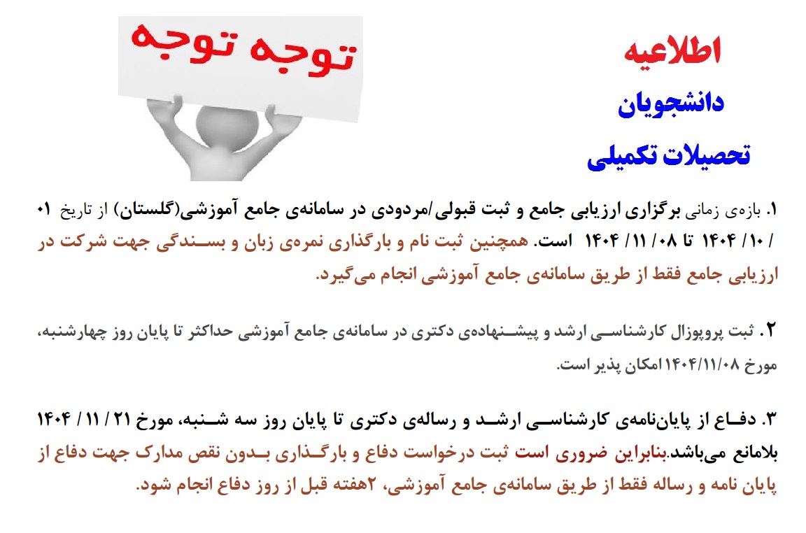 بازه های زمانی مهم دانشجویان تحصیلات تکمیلی در نیمسال جاری - دانشکده تربیت بدنی و علوم ورزشی