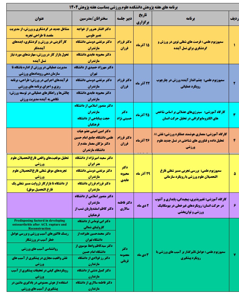 برنامه های هفته پژوهش دانشکده علوم ورزشی بمناسبت هفته پژوهش1404