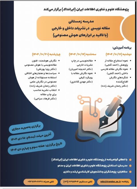 مدرسه زمستاني مقاله نويسي در نشريات داخلي و خارجي (با تاکيد بر ابزارهاي هوش مصنوعي)